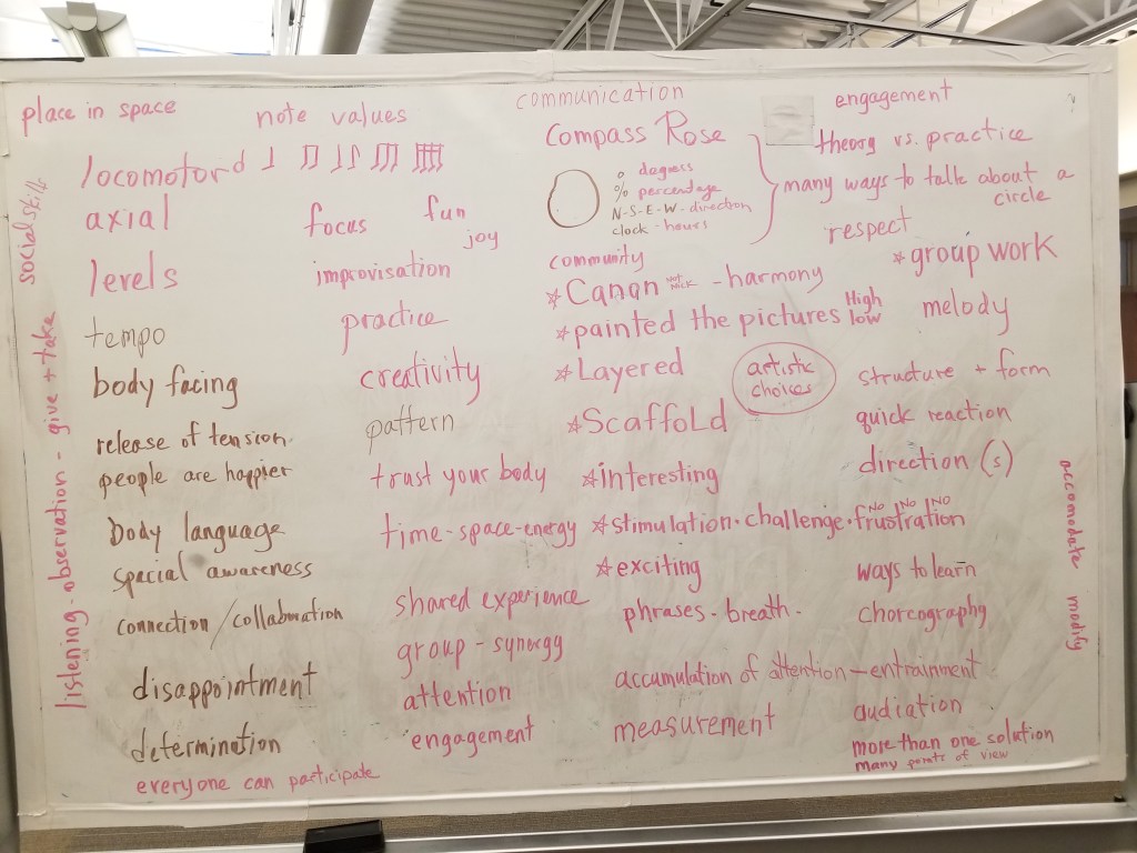 ∗Be able to organize, lead and facilitate movement activities that allow students to experience the joy of exploring time, space and energy, and help them understand the relationship to the written, symbolic representation;