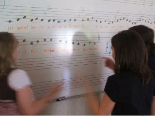 The core group was studying Medieval history, so our music work centered around the Grand Staff, Gregorian chant, rhythmic modes, and an ancient Greek song/dance about Theseus, Ariadne and being lost in the maze.